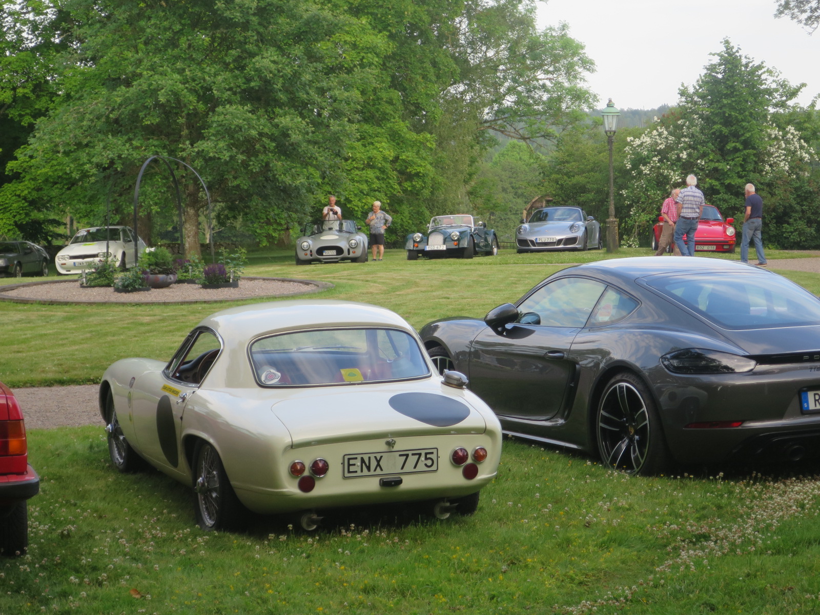 En av de äldsta sportvagnarna på träffen var en Lotus Elite. Tillverkningsår 1962. Modellen lanserades 1957 på Earls Court i London som typ 14 och var i produktion till 1963. Motorn bygger på Coventry Climax grundkontruktion. Slagvolym 1216 cc och inledningsvis 75 hk vilket efterhand ökades till 85 hk genom vassare kam mm. Många skickliga bilkontruktörer var inblandande i framtagningen, bl a Colin Chapman och aerodynamikern Frank Costin. Låg vikt (runt 650 kg), för den tiden hög litereffekt och lågt luftmotstånd (0,29) gjorde bilen populär och framgångsrik på tävlingsbanorna. Bland kända förare kan nämnas Ian Walker, Sir John Whitmore och Jim Clark. Totalt tillverkades ca 1000 Elite typ 14.