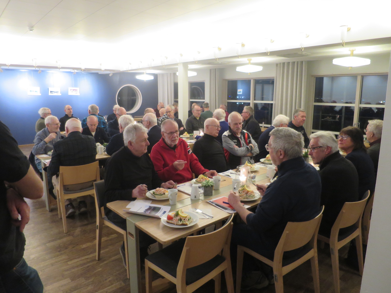 40+ medlemmar hade hörsammat kallelsen till årsmötet. Efter en god räkmacka vidtog mötet.